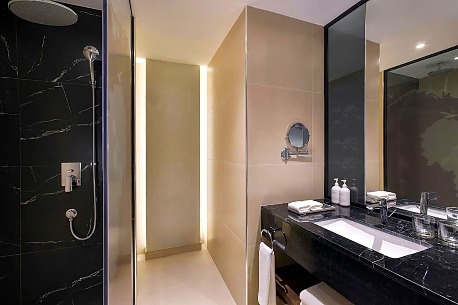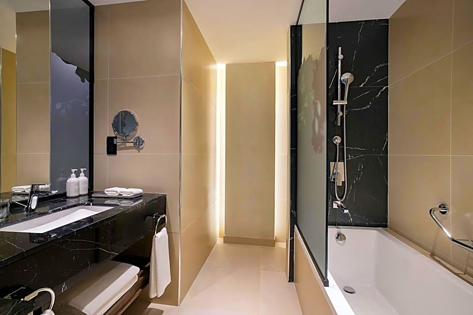 The spacious suite has 1 bedroom and 1 bathroom with a hairdryer and free toiletries. The air-conditioned suite features a flat-screen TV with cable channels, a tea and coffee maker, a seating area, a safe deposit box as well as city views. The unit has 1 bed.